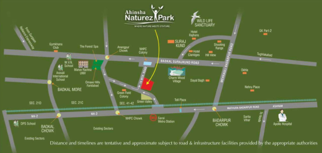 Ahinsha Naturez Park nestled in the lush green Aravalli Ranges at Suraj Kund, Naturez Park is a bouquet of limited edition exclusive premium residences, which comprise a perfect fusion of pristine nature and ultra-modern architecture. At Naturez Park only two apartments on each floor will ensure an uncluttered and relaxed ambiance. Personalized access from a grand entrance lobby, expansive proportions to live, work, play and entertain independently, double glazed windows that open onto scenic views and reduce air-conditioning needs, balconies and gardens to connect you with nature. Indeed, luxury features here exceed all your demands and offer the epitome of iconic living.